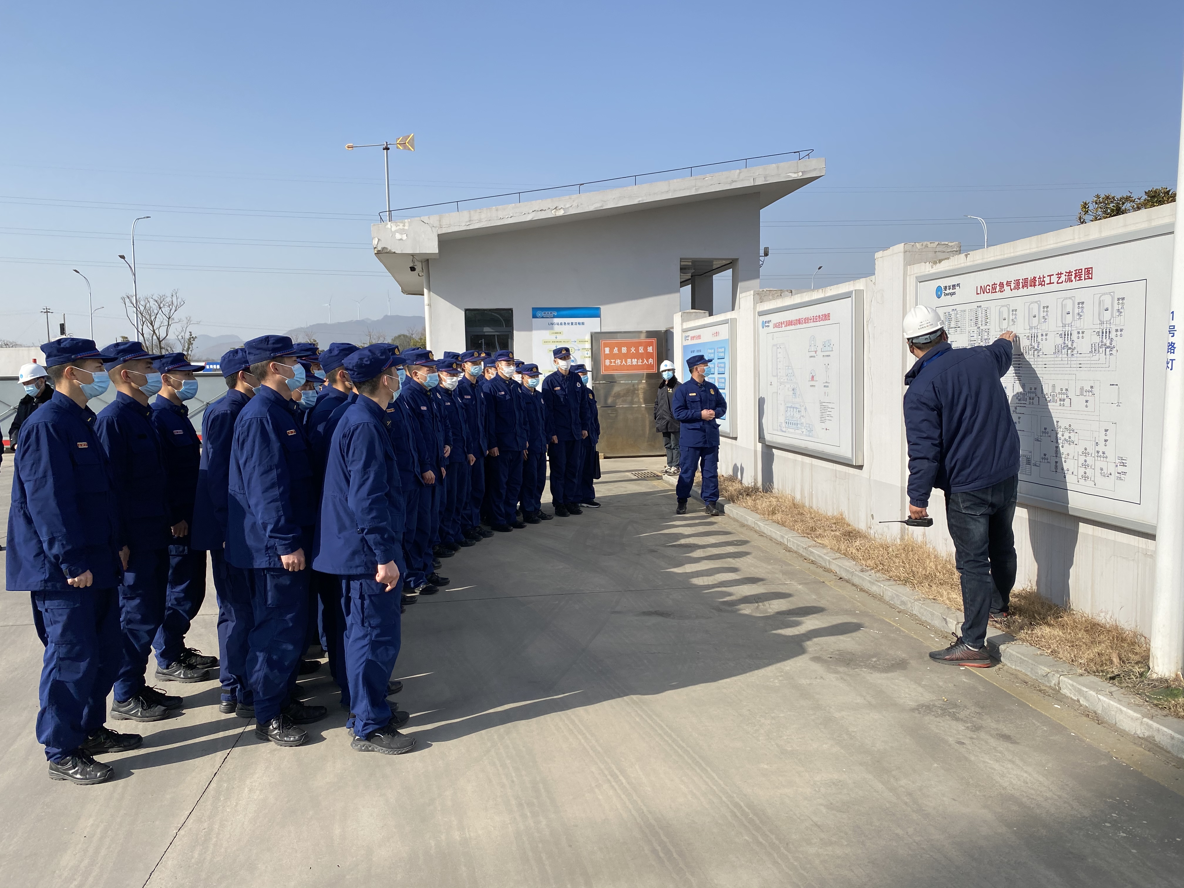 1月12日上午,市消防支隊副支隊長周燦率市區(qū)大中隊指戰(zhàn)員至安慶港華北部新城LNG(液化天然氣)應急調峰站,開展消防安全工作交流,公司常務副總楊善俊及相關部門負責人陪同。