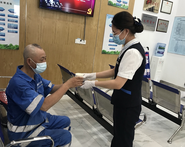 建設(shè)健康窗口。針對近期較為嚴(yán)峻的防疫形勢,多角度筑牢防疫屏障。除每日定時開展?fàn)I業(yè)場所消毒、堅持引導(dǎo)每位用戶掃描安康碼和測量體溫外,在引導(dǎo)員崗位投用移動服務(wù)設(shè)備,為市民直接提供信息查詢、業(yè)務(wù)派單等服務(wù),在高效服務(wù)用戶、減少用戶大廳停留時間同時,實現(xiàn)人員源頭分流,進(jìn)一步降低了用戶交叉接觸可能。
