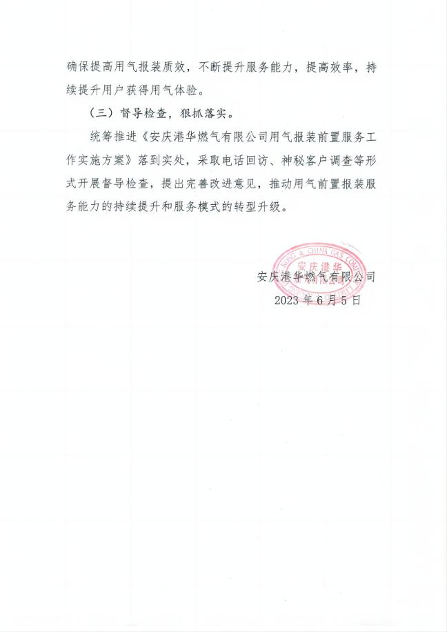 安慶港華燃?xì)庥邢薰居脷鈭?bào)裝 前置服務(wù)工作實(shí)施方案