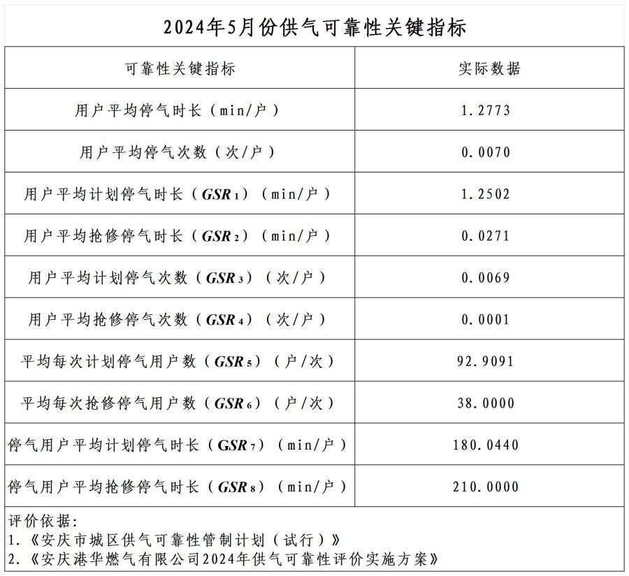 2024年5月供氣可靠性關(guān)鍵指標(biāo)