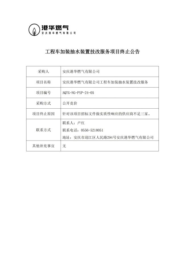 工程車加裝抽水裝置技改服務(wù)項(xiàng)目終止公告