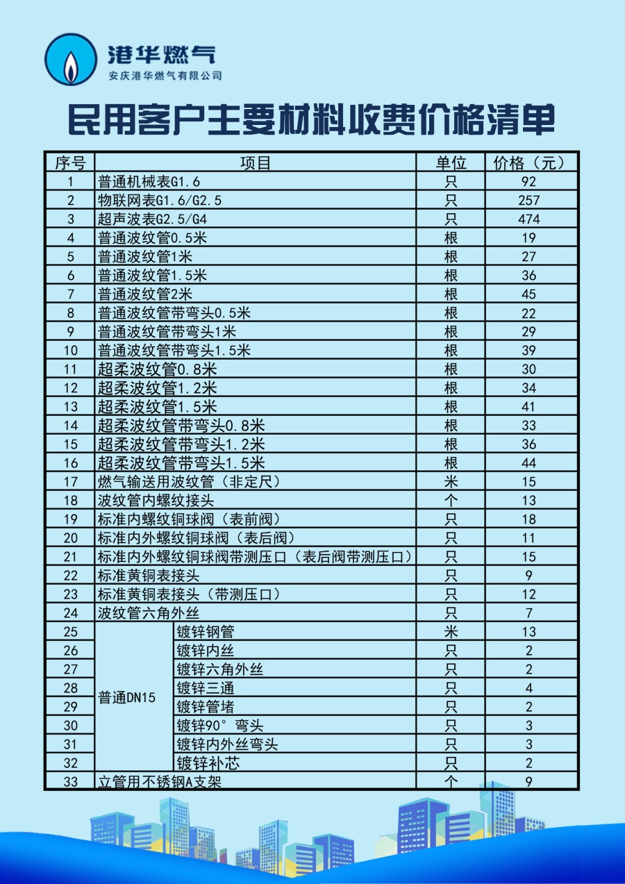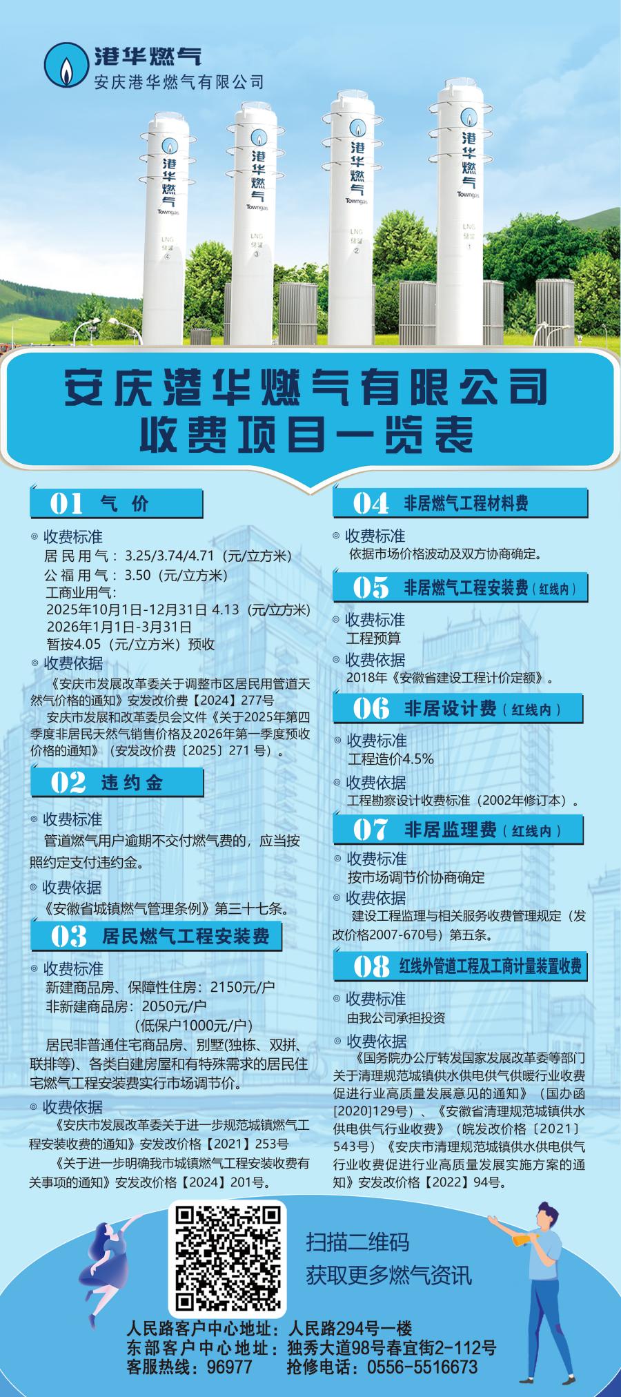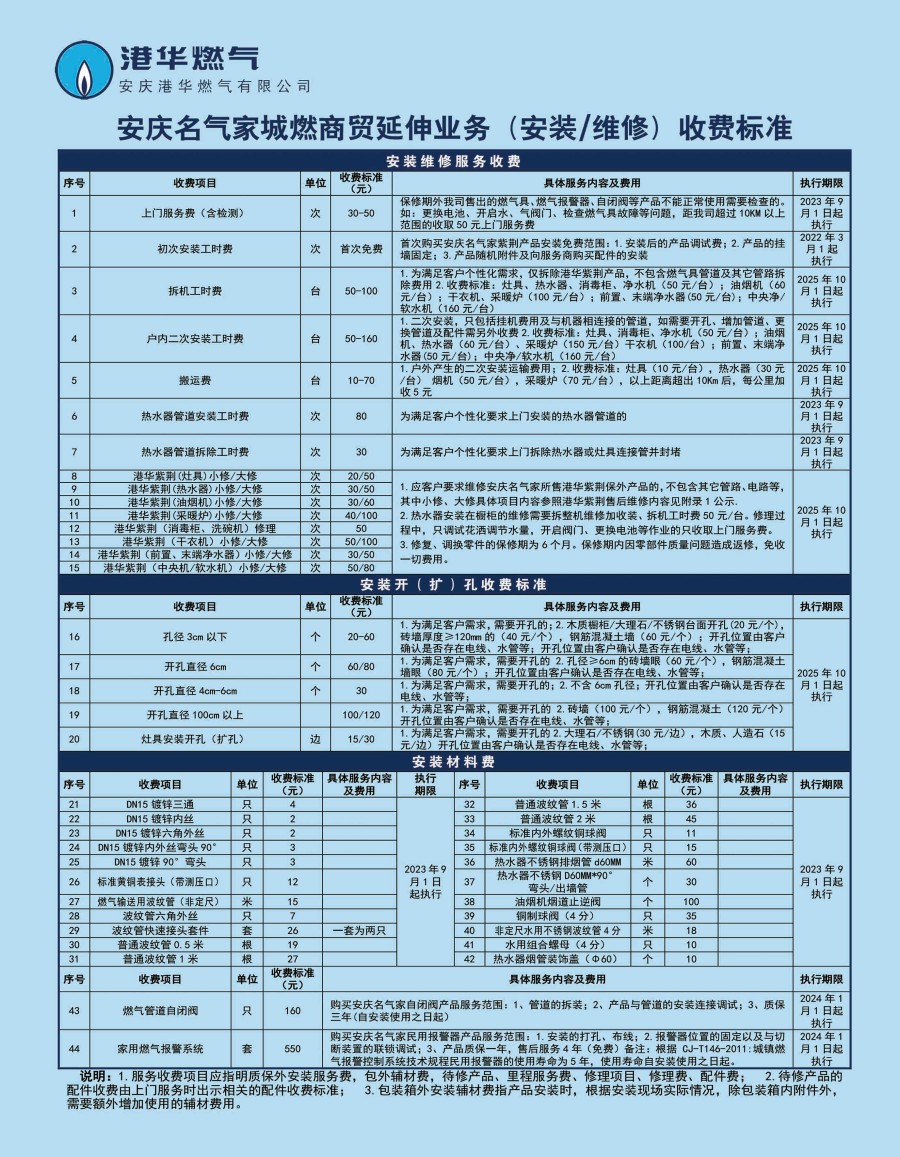 安慶港華燃氣有限公司收費項目一覽表(2025) 發(fā)布時間:2025-10-10    閱讀次數(shù):8041次