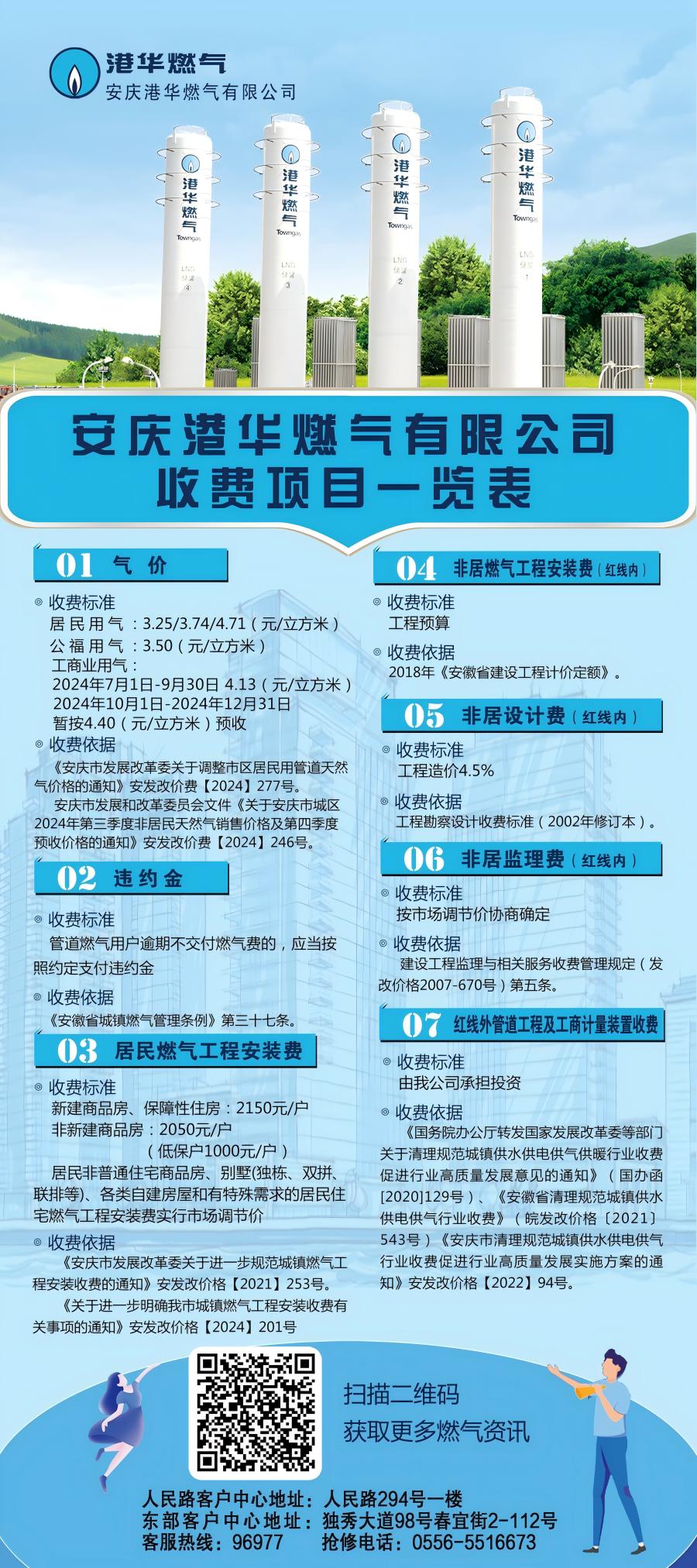 安慶港華燃?xì)庥邢薰臼召M(fèi)項(xiàng)目一覽表(2024)