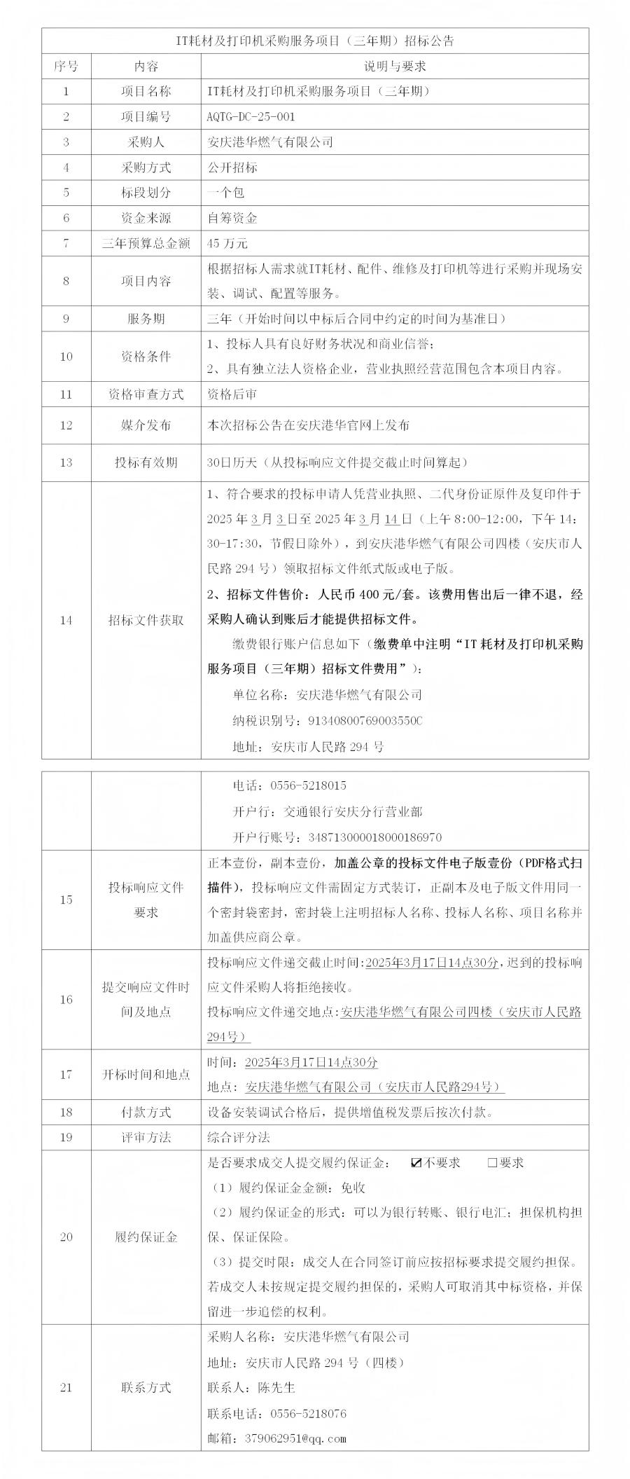 IT耗材及打印機采購服務項目(三年期)招標公告
