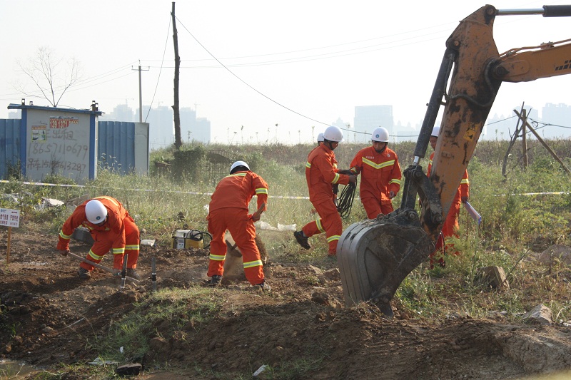 近年來,隨著城市基礎(chǔ)設(shè)施及老舊小區(qū)改造工作不斷加快,工程建設(shè)對(duì)地下天然氣管網(wǎng)的安全運(yùn)行帶來的威脅亦不斷加大?,F(xiàn)場(chǎng)模擬輝煌路中壓A級(jí)PE160燃?xì)夤艿辣坏谌绞┕挝黄茐?,安慶港華維搶修中心在接到搶險(xiǎn)指令后,迅速派出專業(yè)搶險(xiǎn)隊(duì)伍于30分鐘內(nèi)趕到事故現(xiàn)場(chǎng),并有條不紊地開展事故現(xiàn)場(chǎng)控制、疏散警戒、現(xiàn)場(chǎng)信息傳遞、事故逐級(jí)報(bào)告、消防聯(lián)動(dòng)配合、搶險(xiǎn)方案制定、儀器裝備操作、停氣復(fù)供、事故現(xiàn)場(chǎng)調(diào)查等程序,通過多部門配合,最終成功控制險(xiǎn)情并修復(fù)了受損管道,恢復(fù)正常供氣。